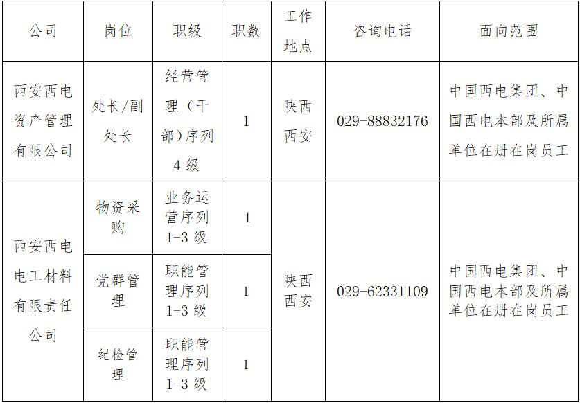 本次面向公司内部公开招聘岗位信息如下: